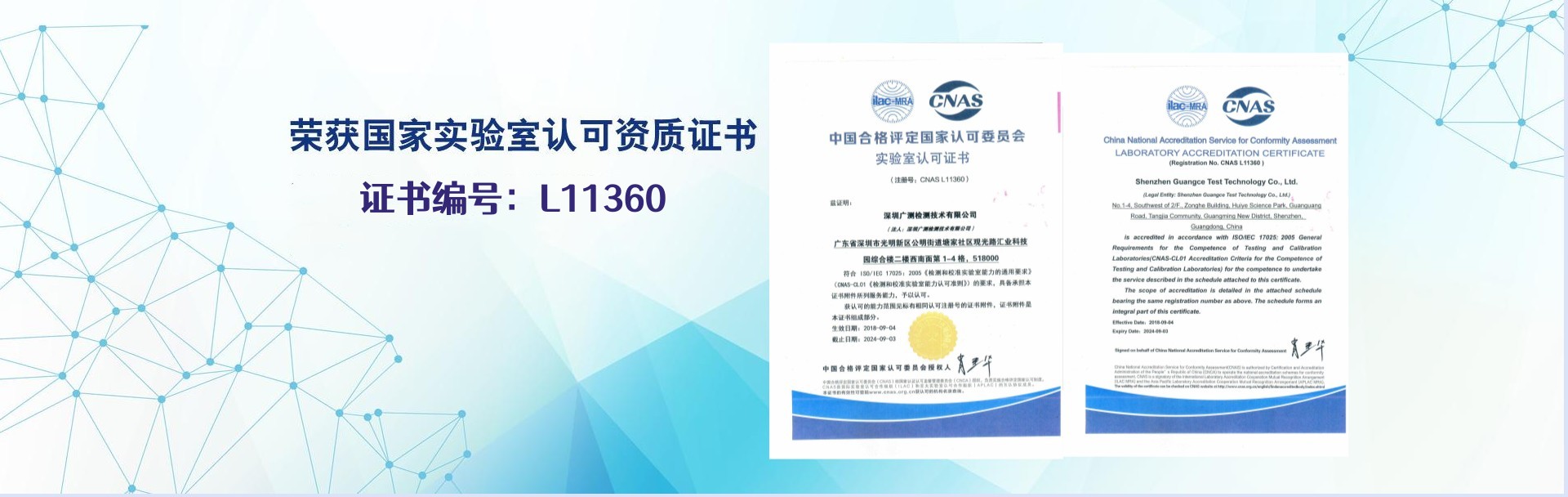 我们成立于2015年通过《中华人民共和国计量法》及有关计量法规行政管理规定要求,经深圳市政府依法注册专业从事“仪器校准”第三方计量校准服务机构,具有独立合法的第三方公正地位,中国合格评定国家认可委员会(CNAS)认可证书号:L11360,校准数据可追溯国家标准或社会公用计量标准,并获得与CNAS签署多边互认协议国家和地区实验室认可机构承认,所出具的校准证书具有权威性、公正性。
